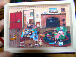 Grandma's chair, side table, lamp, and dollhouse