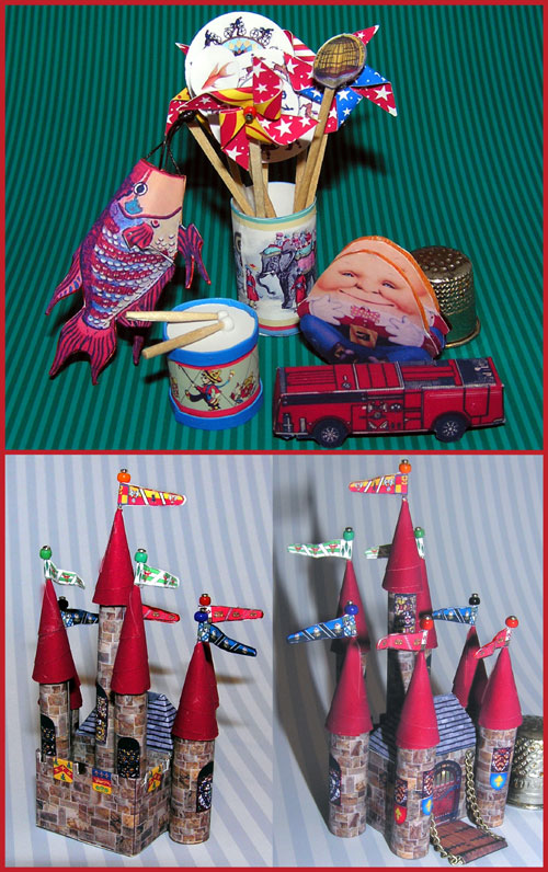 Vintage Toy Shop Detail Each easy-to-make, digital download kit contains oodles of toys inspired by the beauty and craftsmanship of yester-year. Each is engineered to provide strength and displays beautiful color and clarity. All the toys seen above are found in these kits. Information for purchasing the display shop box kit can be found at the end of this page. It's a lovely and fun way to display your collection of vintage toys.