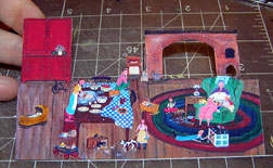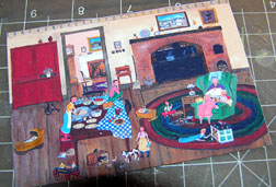 Grandma's chair, side table, lamp, and dollhouse