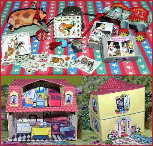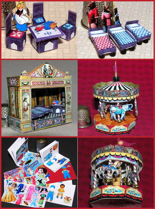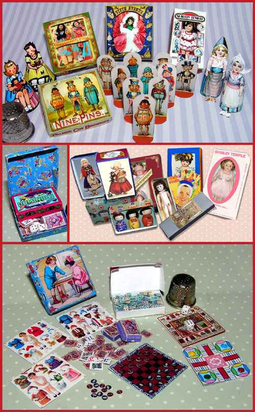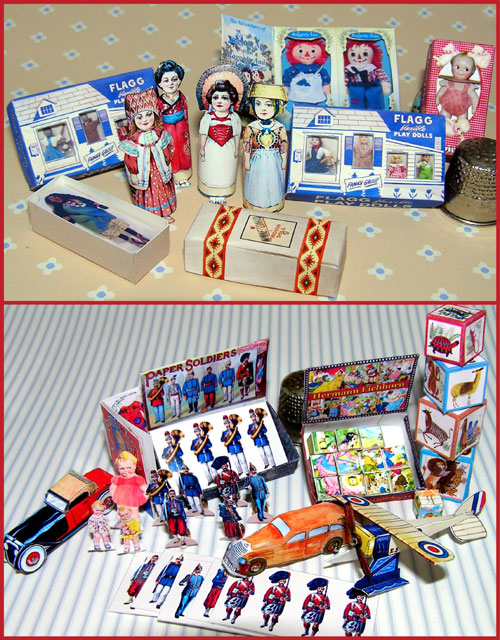 Vintage Toy Shop Detail Each easy-to-make, digital download kit contains oodles of toys inspired by the beauty and craftsmanship of yester-year. Each is engineered to provide strength and displays beautiful color and clarity. All the toys seen above are found in these kits. Information for purchasing the display shop box kit can be found at the end of this page. It's a lovely and fun way to display your collection of vintage toys.
